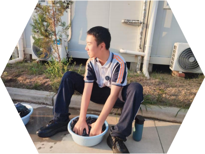 生活技能训练也富含教育意义。在洗衣区,学生们拿起脸盆,认真学习“军装 ”清洗与晾晒技巧,展现出他们的劳动热情和对军装的热爱。同学们在劳作游戏中激烈角逐,在教官的精彩总结中感悟如何面对挫折与困难,领悟沟通的重要性,学会树立创新意识。